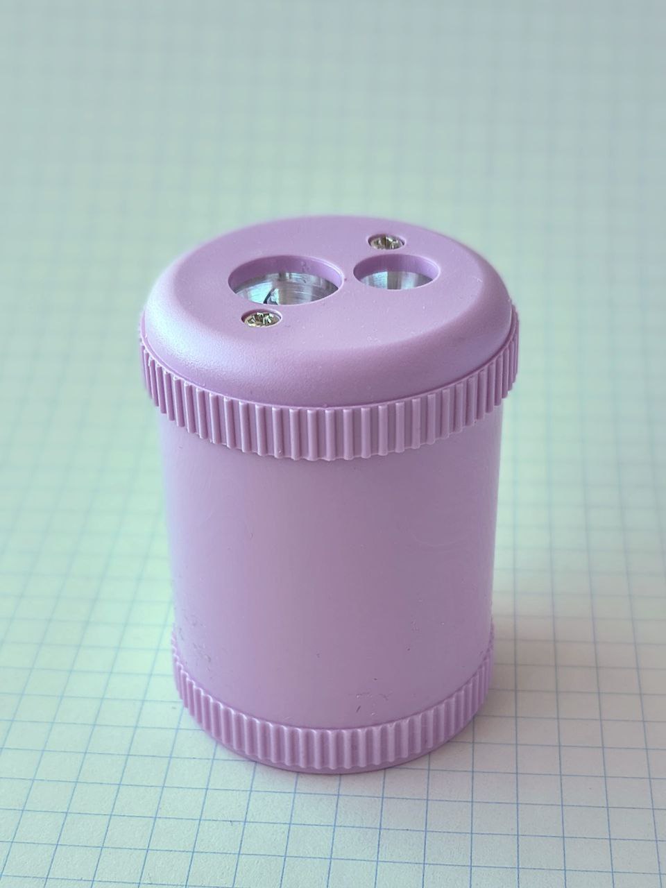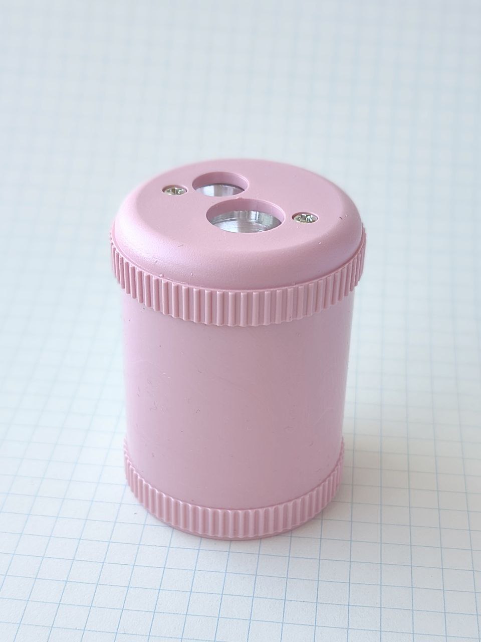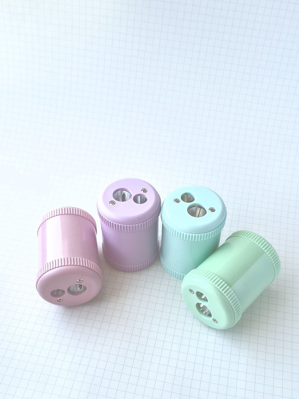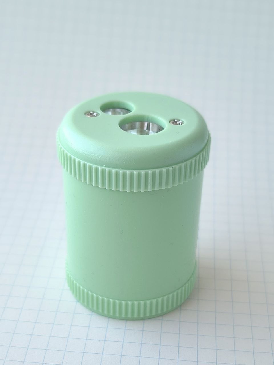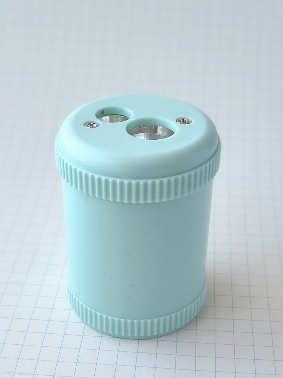 Sacapuntas doble de magnesio en un recipiente plástico para lapices